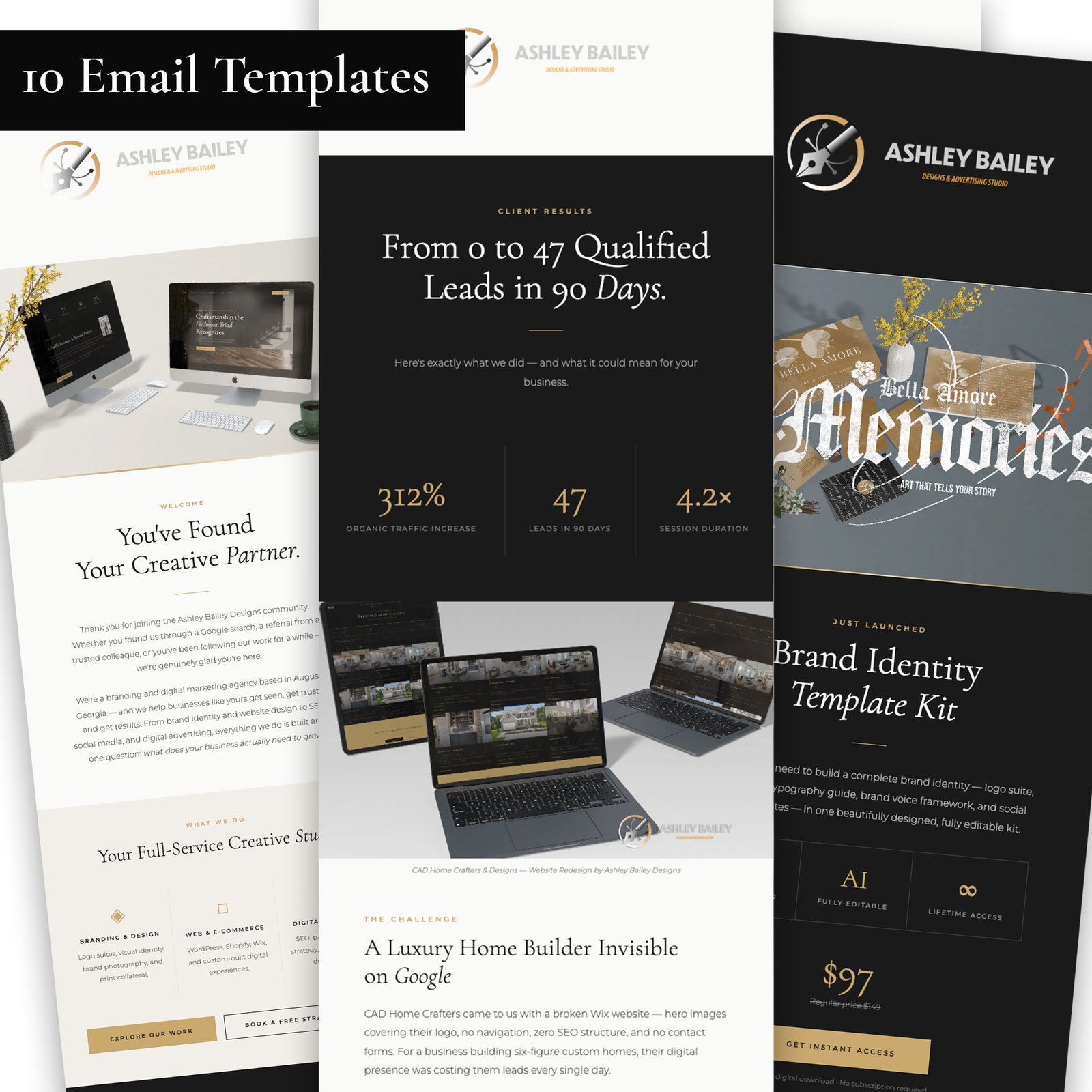Enjoy a pack of 10 email templates ready for your photography, real estate,  to customize for your products and services.